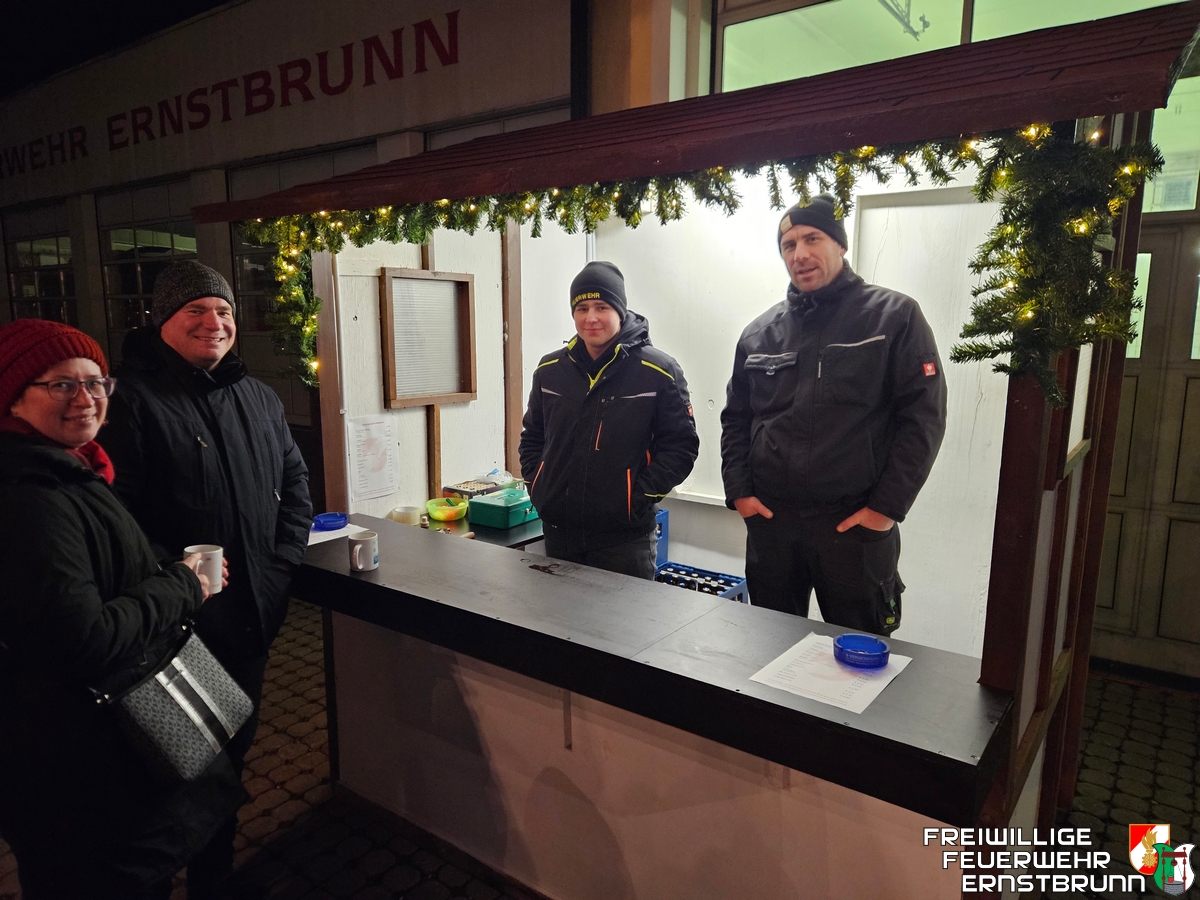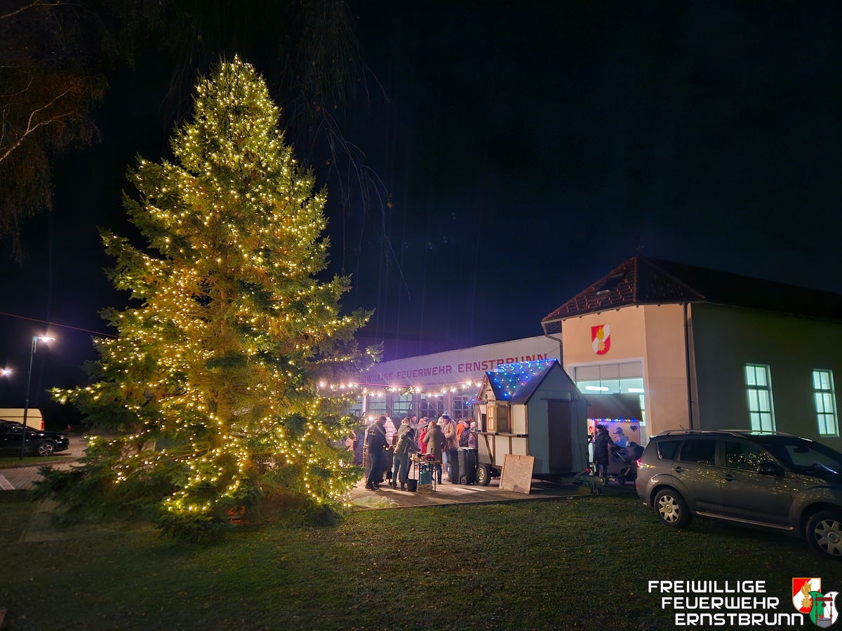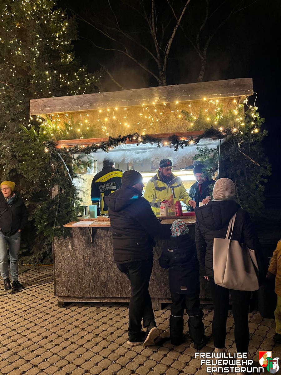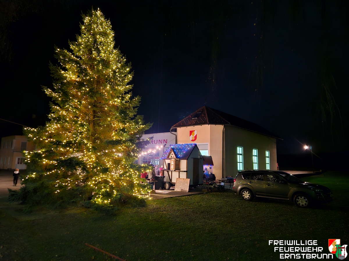 Am Samstagabend, dem 29. November, fand unser erster Punschstand dieses Jahres vor der Feuerwehrzentrale Ernstbrunn statt. Zum ersten Mal erstrahlten unser großer Christbaum und die frisch renovierten Verkaufshütten. Feuerschalen, Heizfässer und viele Weihnachtslichter sorgten für eine stimmungsvolle Atmosphäre in der Vorweihnachtszeit.