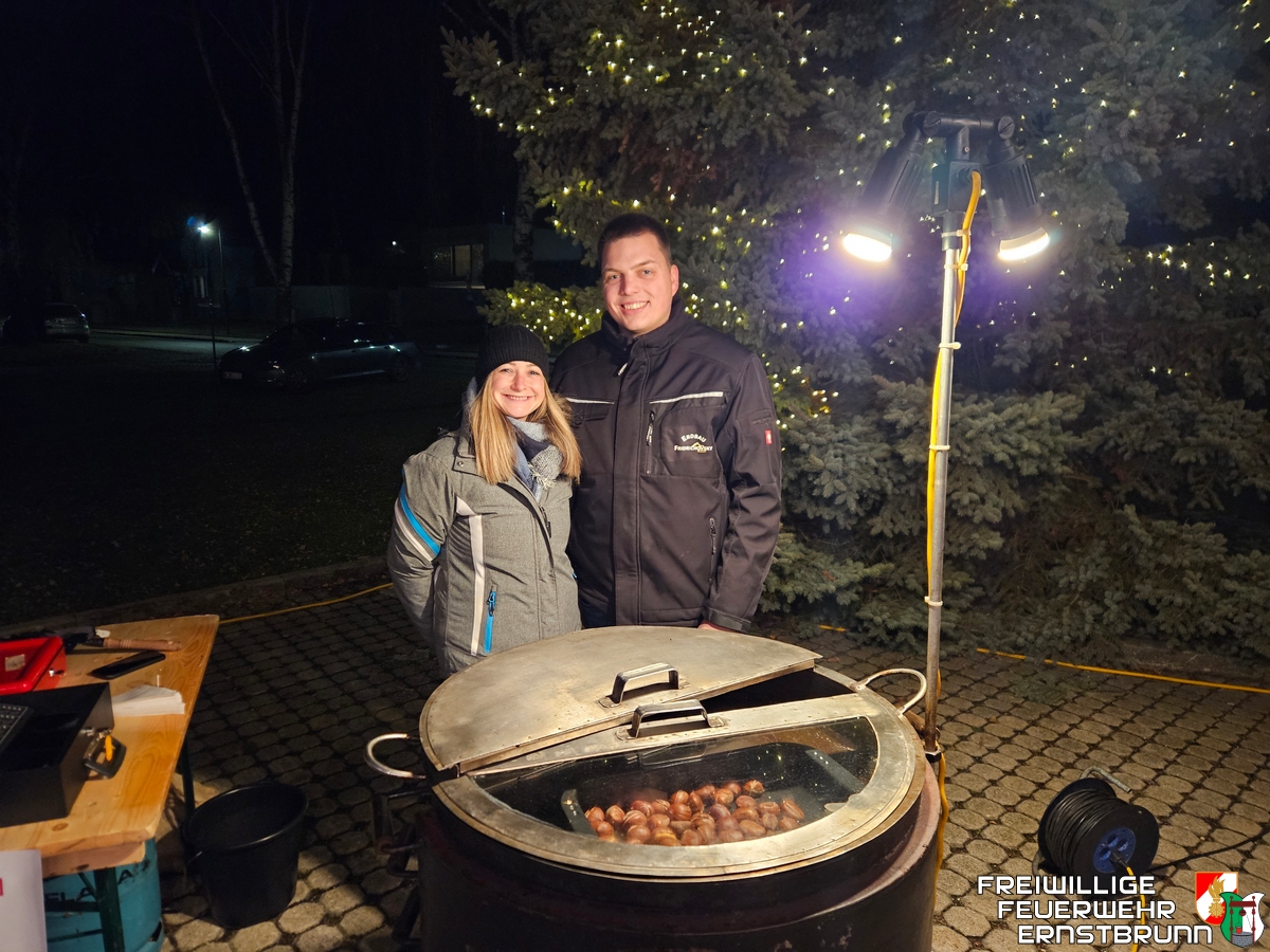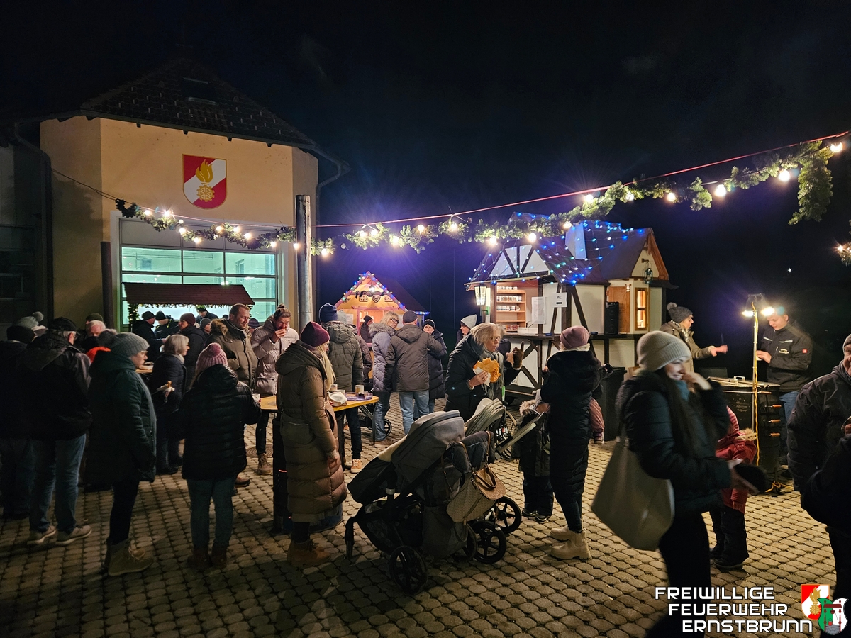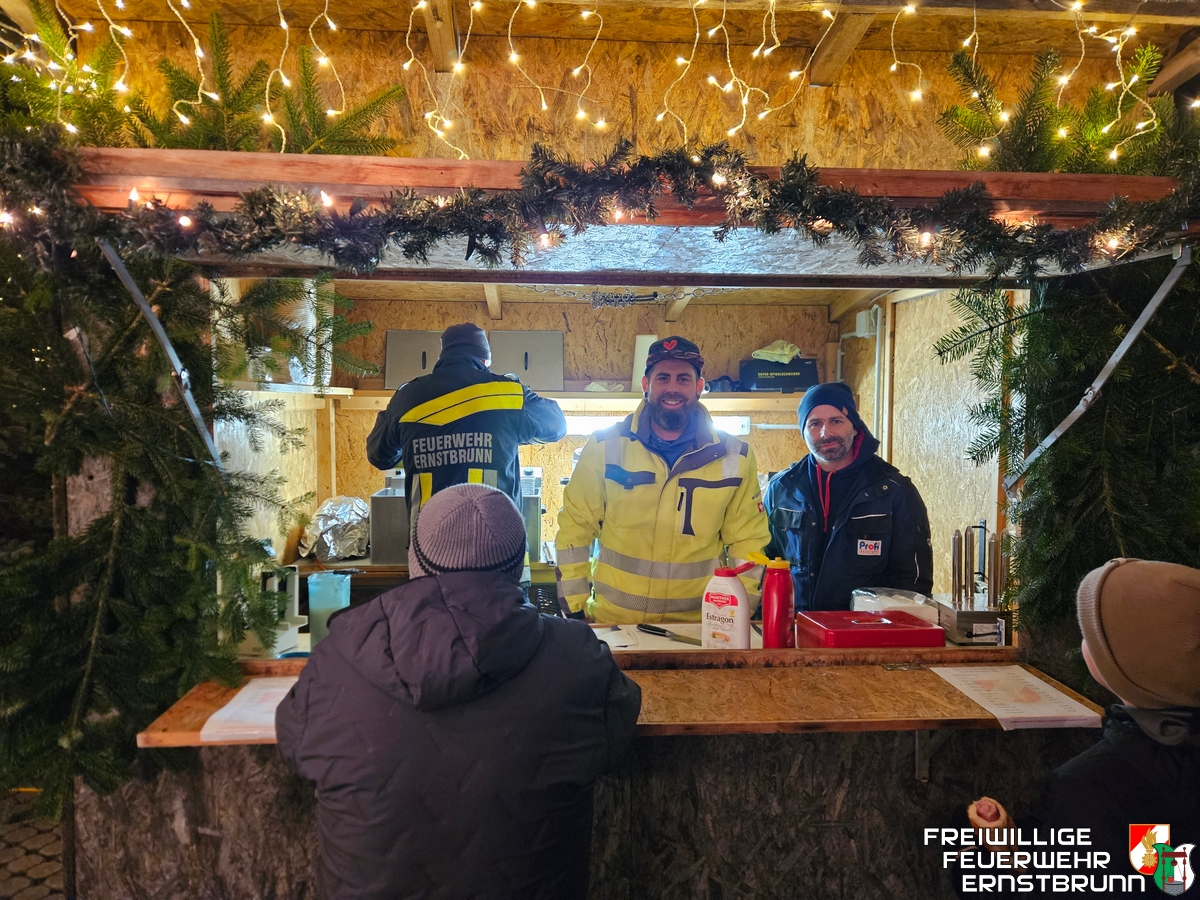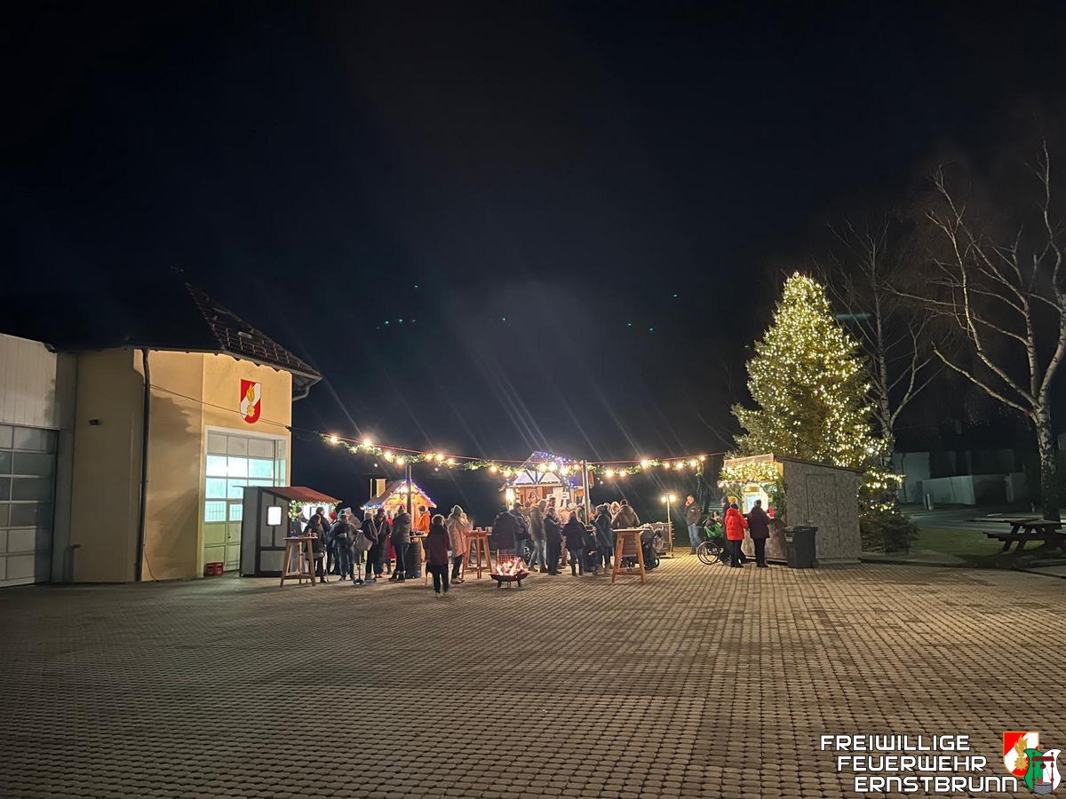 Am Samstagabend, dem 29. November, fand unser erster Punschstand dieses Jahres vor der Feuerwehrzentrale Ernstbrunn statt. Zum ersten Mal erstrahlten unser großer Christbaum und die frisch renovierten Verkaufshütten. Feuerschalen, Heizfässer und viele Weihnachtslichter sorgten für eine stimmungsvolle Atmosphäre in der Vorweihnachtszeit.