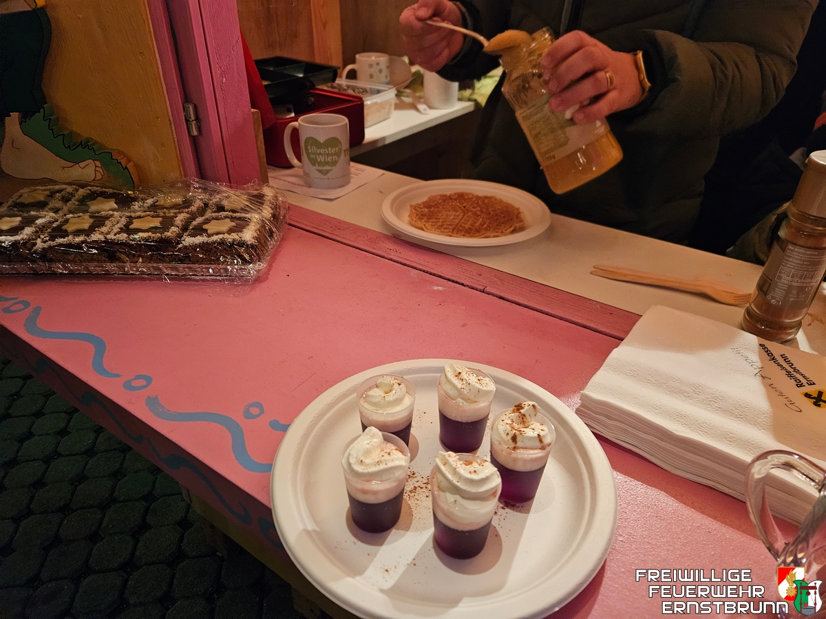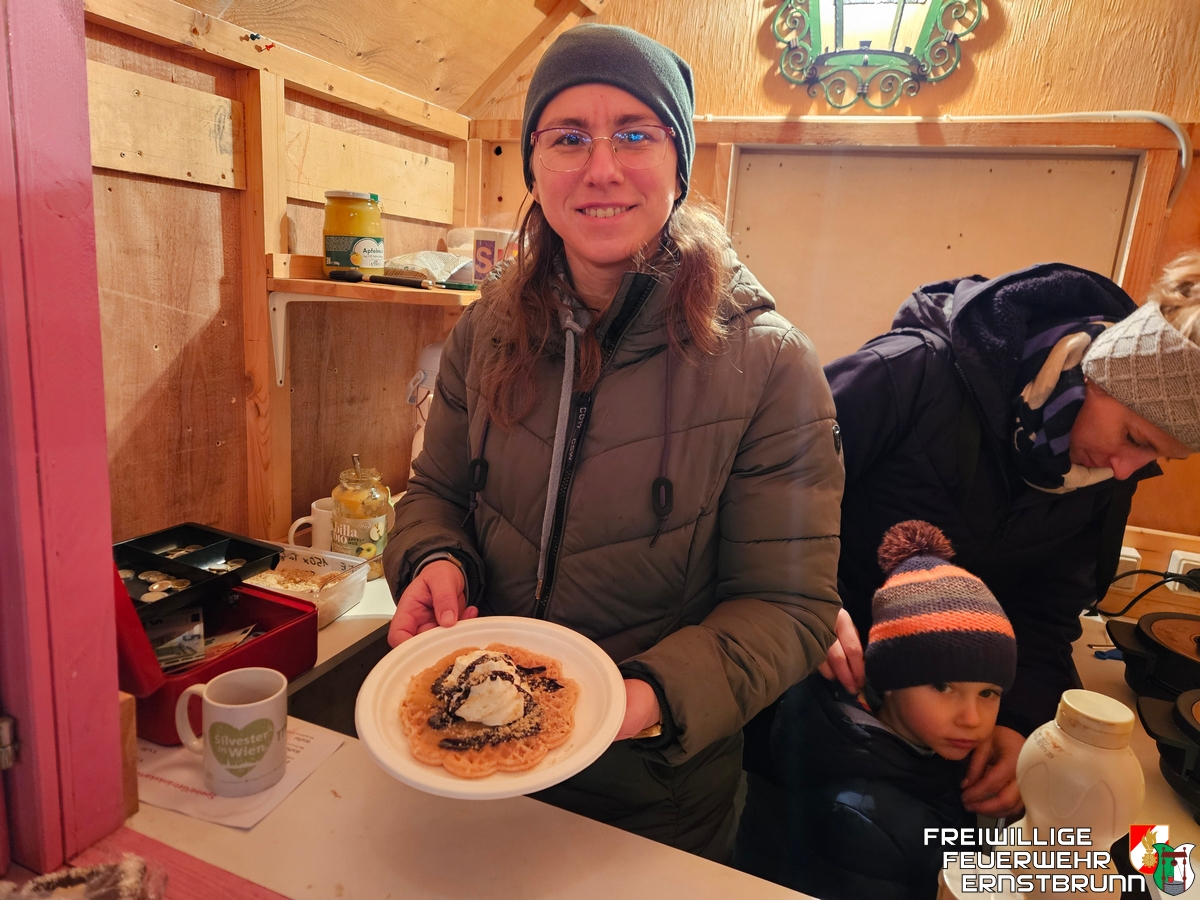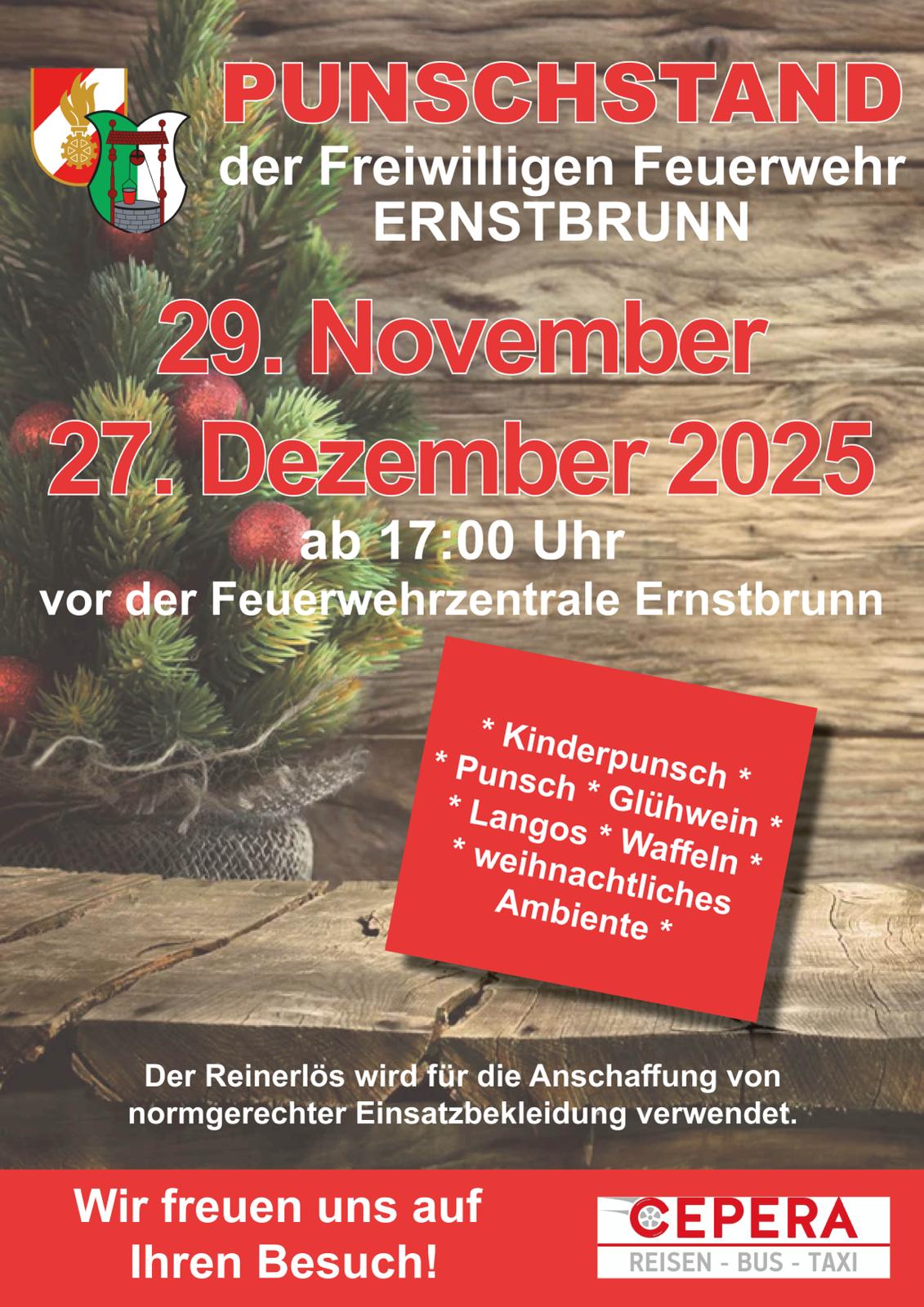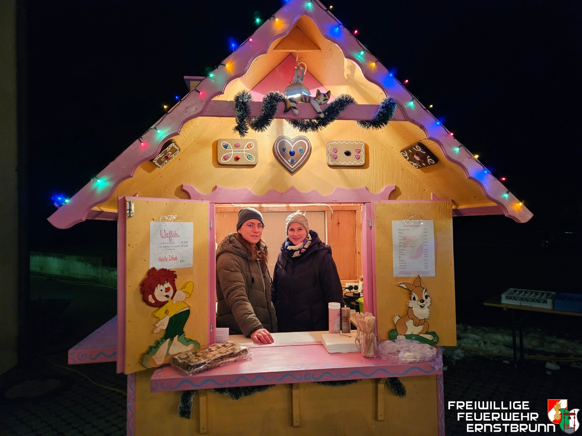 Am Samstagabend, dem 29. November, fand unser erster Punschstand dieses Jahres vor der Feuerwehrzentrale Ernstbrunn statt. Zum ersten Mal erstrahlten unser großer Christbaum und die frisch renovierten Verkaufshütten. Feuerschalen, Heizfässer und viele Weihnachtslichter sorgten für eine stimmungsvolle Atmosphäre in der Vorweihnachtszeit.