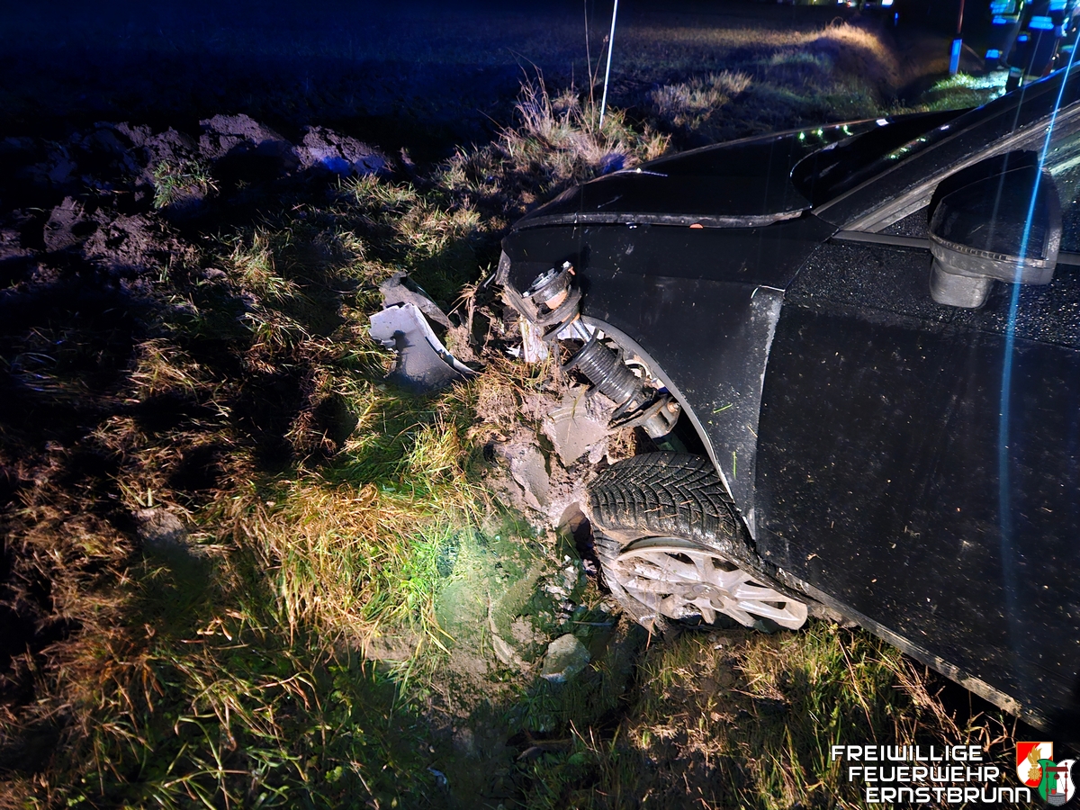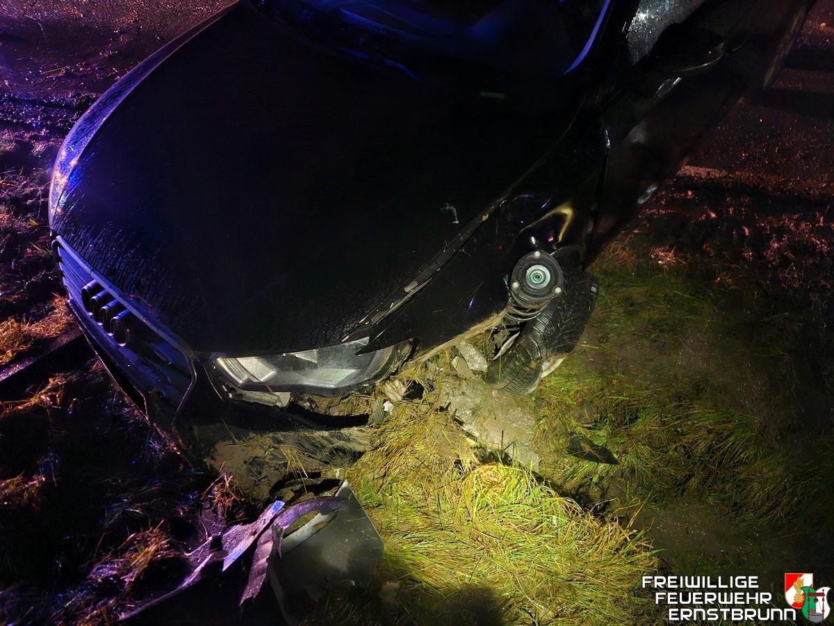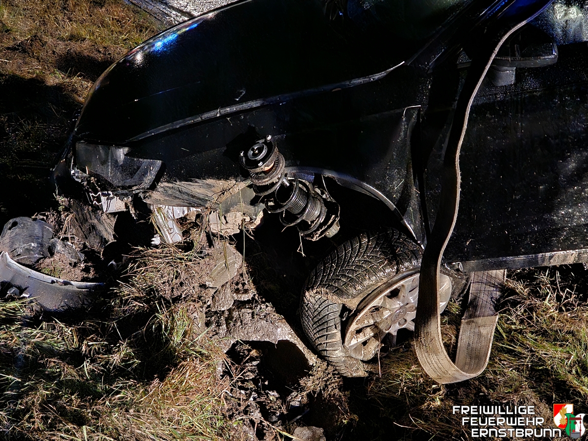 Ein Lenker war auf der regennassen Fahrbahn von der Straße abgekommen und gegen ein Betonrohr im Straßengraben geprallt. Beim Eintreffen war die Unfallstelle durch die Mitglieder der Freiwilligen Feuerwehr Naglern bereits abgesichert, sodass wir sofort mit der Bergung des beschädigten Fahrzeugs beginnen konnten.