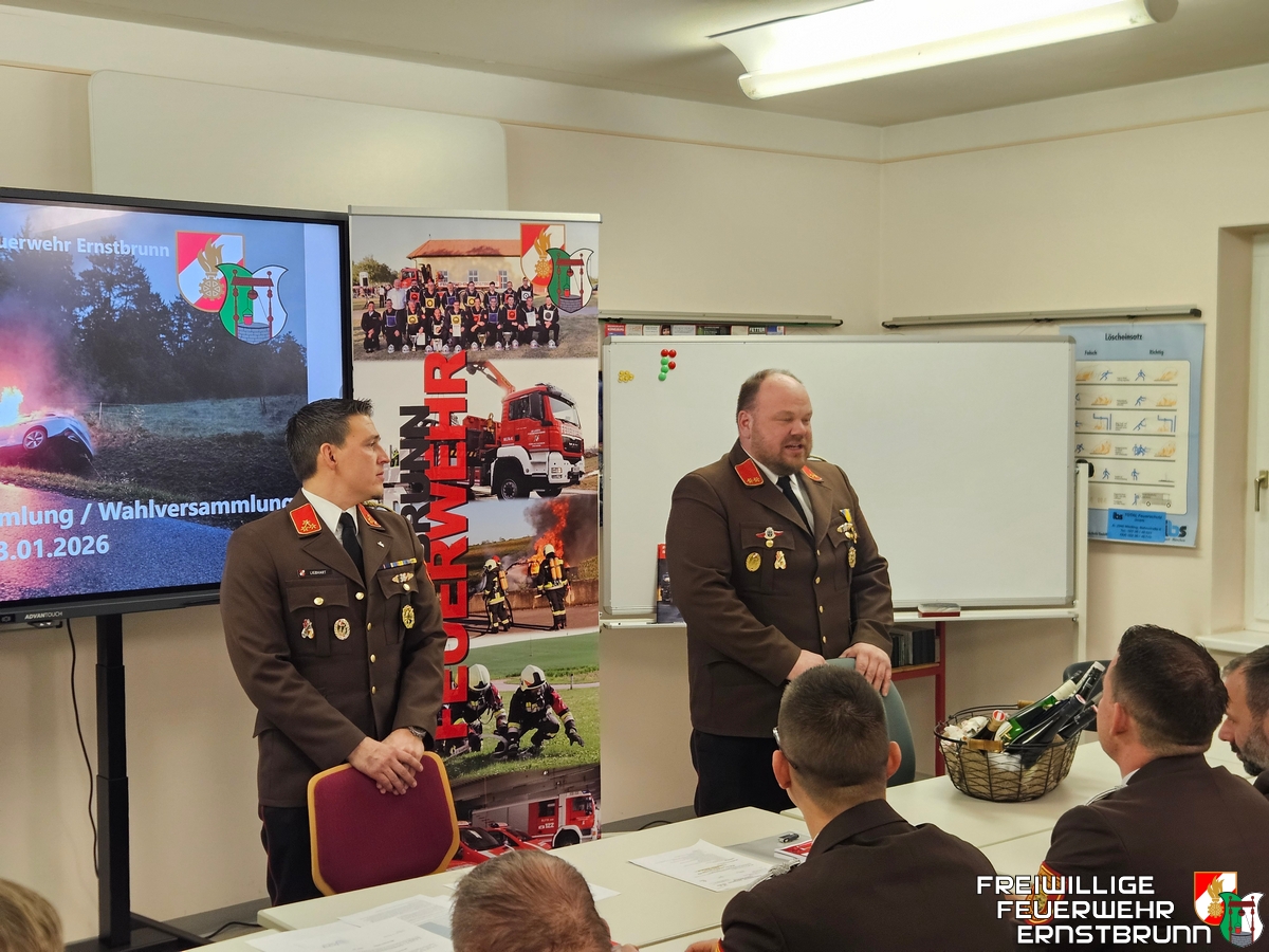 Am Freitagabend, dem 23. Jänner 2026, fand die diesjährige Mitgliederversammlung der Freiwilligen Feuerwehr Ernstbrunn mit der anschließenden Wahl des Feuerwehrkommandos statt.