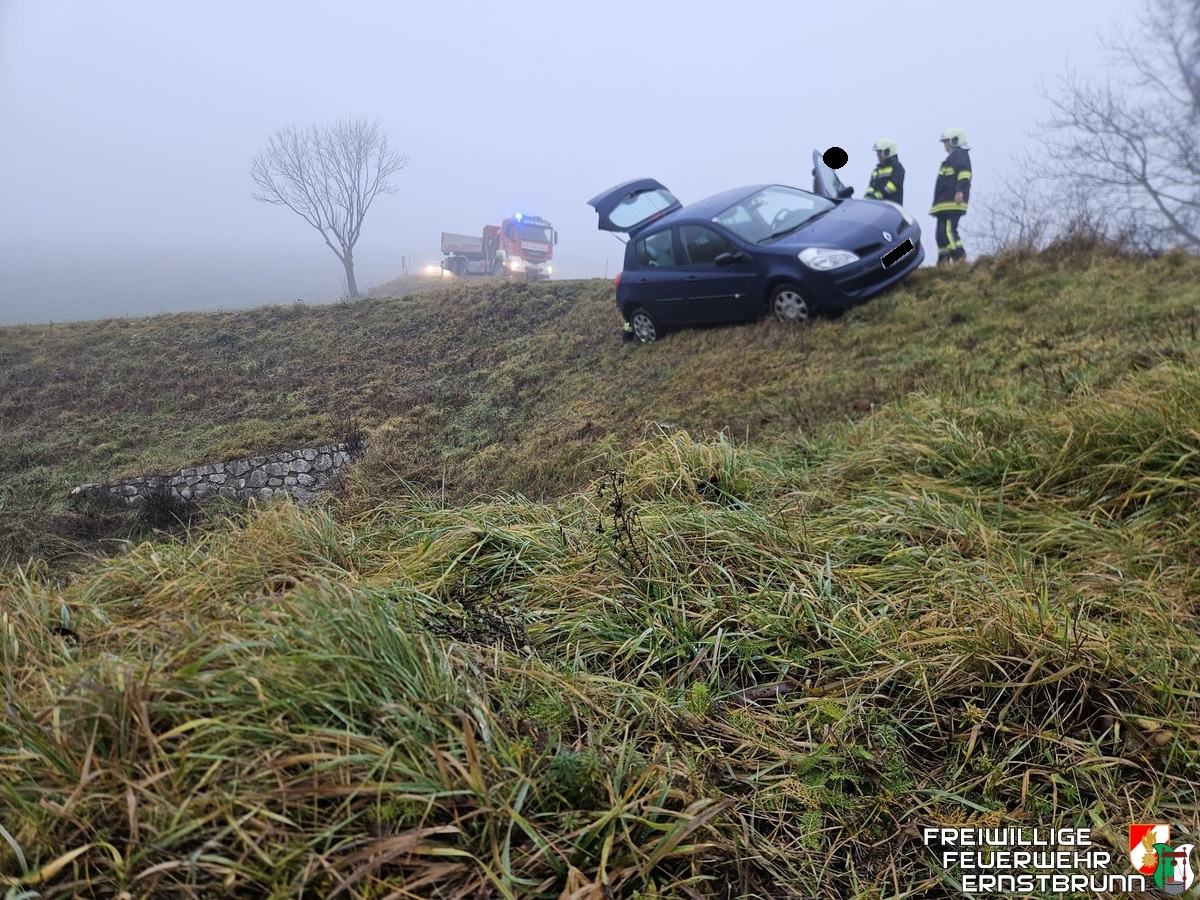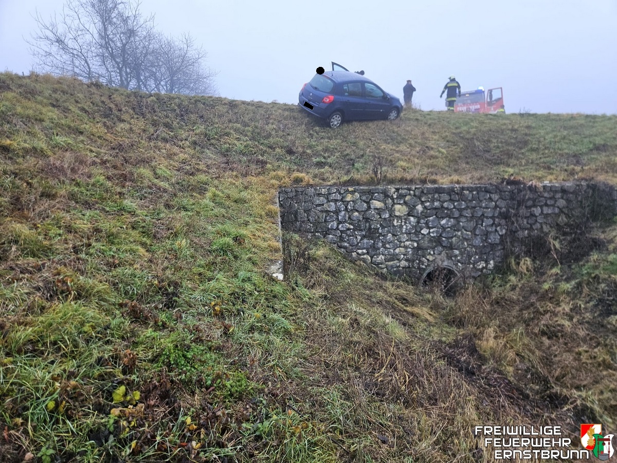 Ein PKW war aus bislang unbekannter Ursache von der Fahrbahn abgekommen und eine Böschung hinuntergerutscht. Glück im Unglück hatten die beiden Fahrzeuginsassen, denn wäre das Fahrzeug noch ein Stück weiter gerutscht, hätte der Einsatz vermutlich einen anderen Verlauf genommen.