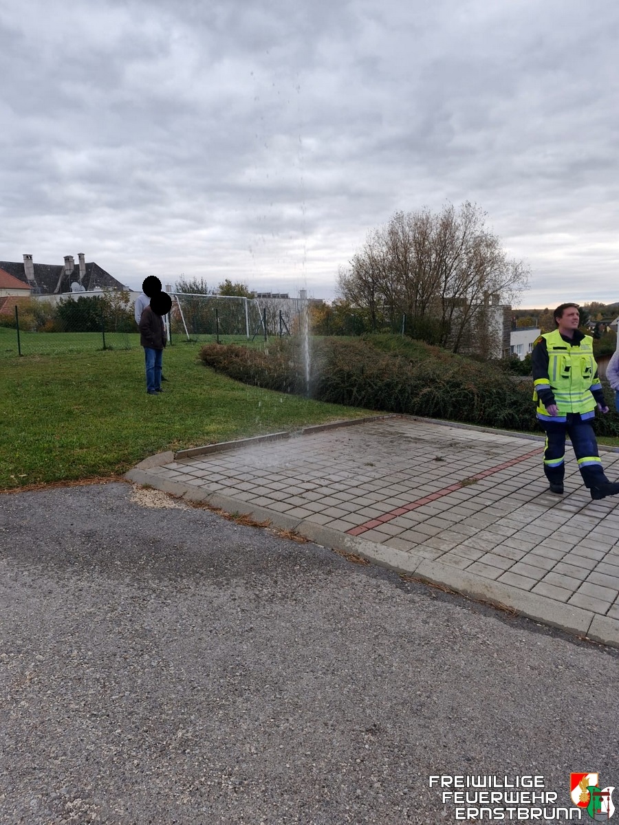 Am Dienstagnachmittag, dem 28. Oktober, wurden wir zu einem Wassergebrechen in Ernstbrunn alarmiert. Die Zusatzinformation „Wasserfontäne aus dem Boden“ ließ zunächst auf einen größeren Wasserrohrbruch schließen. Umgehend rückten das Rüstlöschfahrzeug und das Rüstfahrzeug zum Einsatz aus.