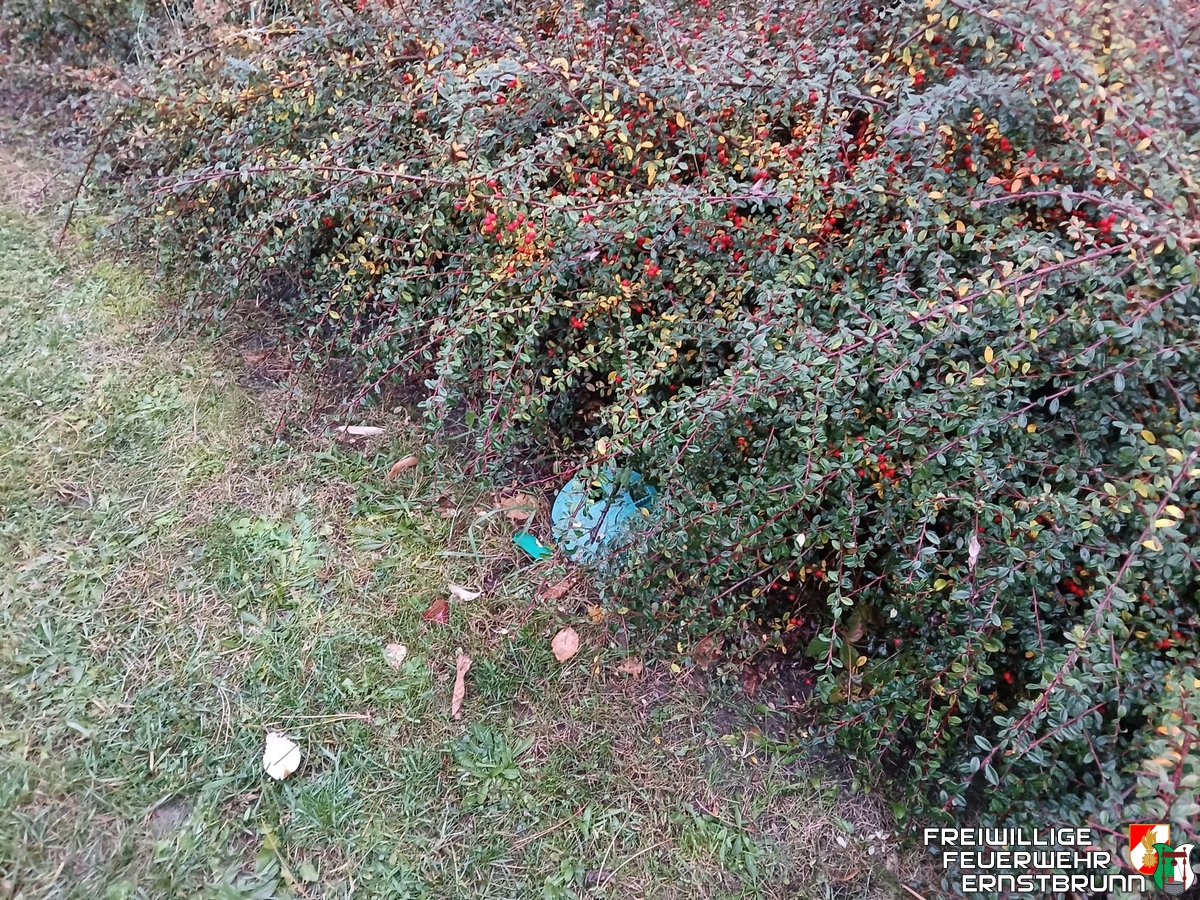 Vor Ort zeigte sich jedoch, dass der Schaden zum Glück deutlich geringer war als befürchtet. In einem kleinen Schacht für die Gartenbewässerung war ein Ventil geöffnet, wodurch das Wasser senkrecht nach oben spritzte. Unser Kommandant und Einsatzleiter nahm seinen ganzen Mut zusammen, trotzte der Gefahr, völlig durchnässt zu werden, und schloss das Ventil mit einem gekonnten Handgriff. Damit war der Einsatz auch schon beendet.